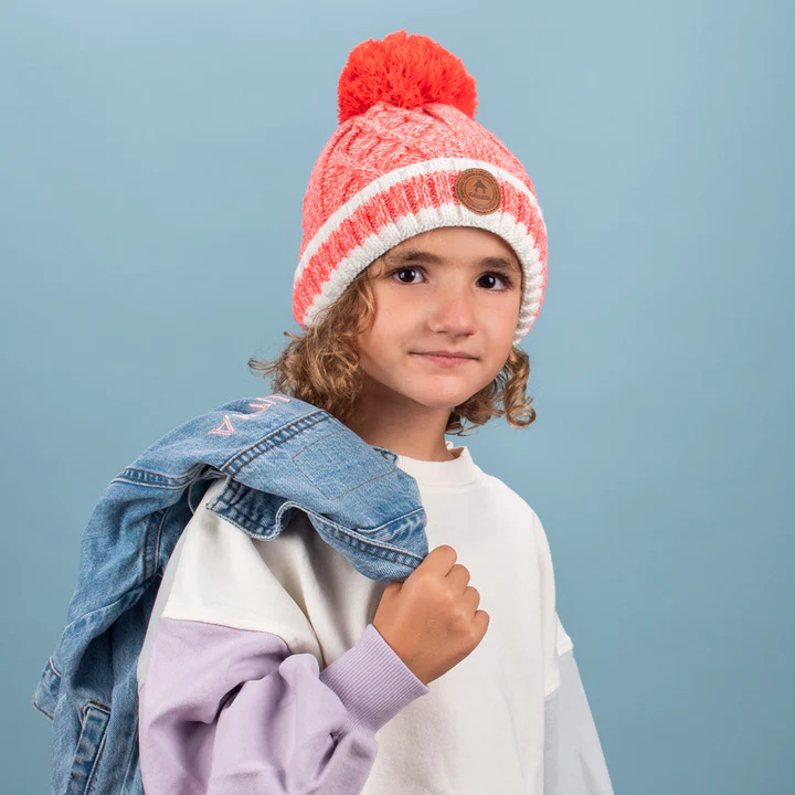 Un bonnet enfant tout doux, avec ses 3 pompons interchangeables grâce à un système d’aimant puissant, pour assortir votre bonnet à toutes vos tenues et à votre humeur. Bonnet tricoté avec amour sans matière animale et des matières premières 100% européennes.