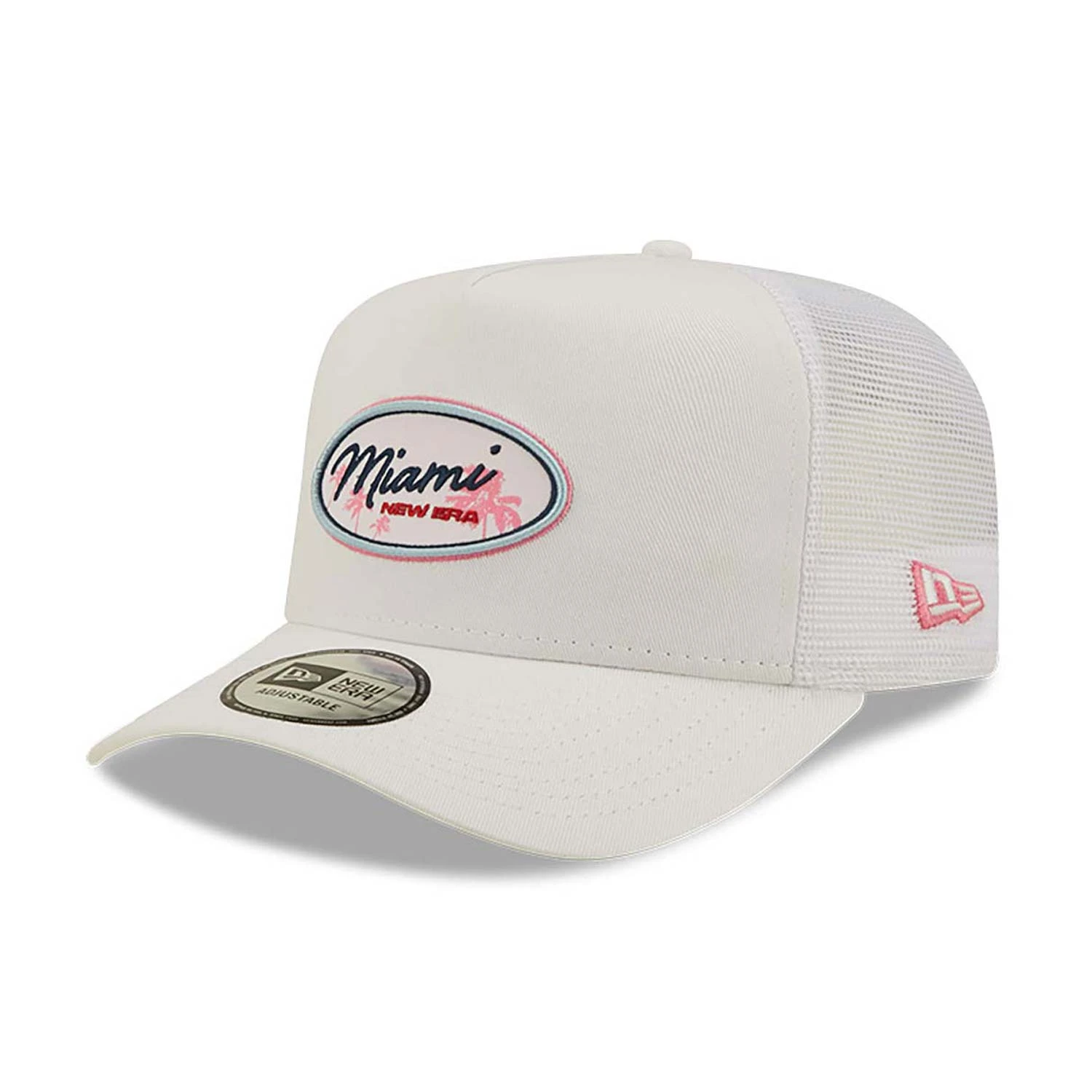 Description de la Casquette New Era A-Frame Trucker Miami State Patch – Blanc