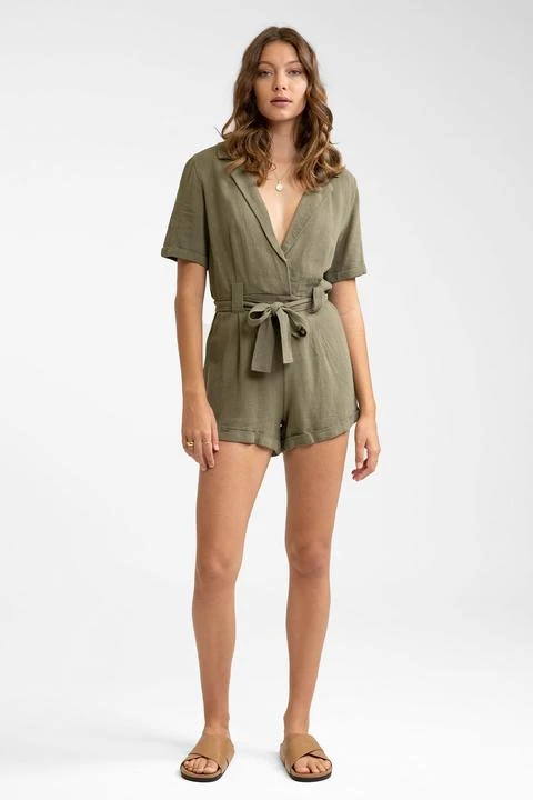 Description de la Combinaison short Rhythm Catalina Short Sleeve Romper – Khaki