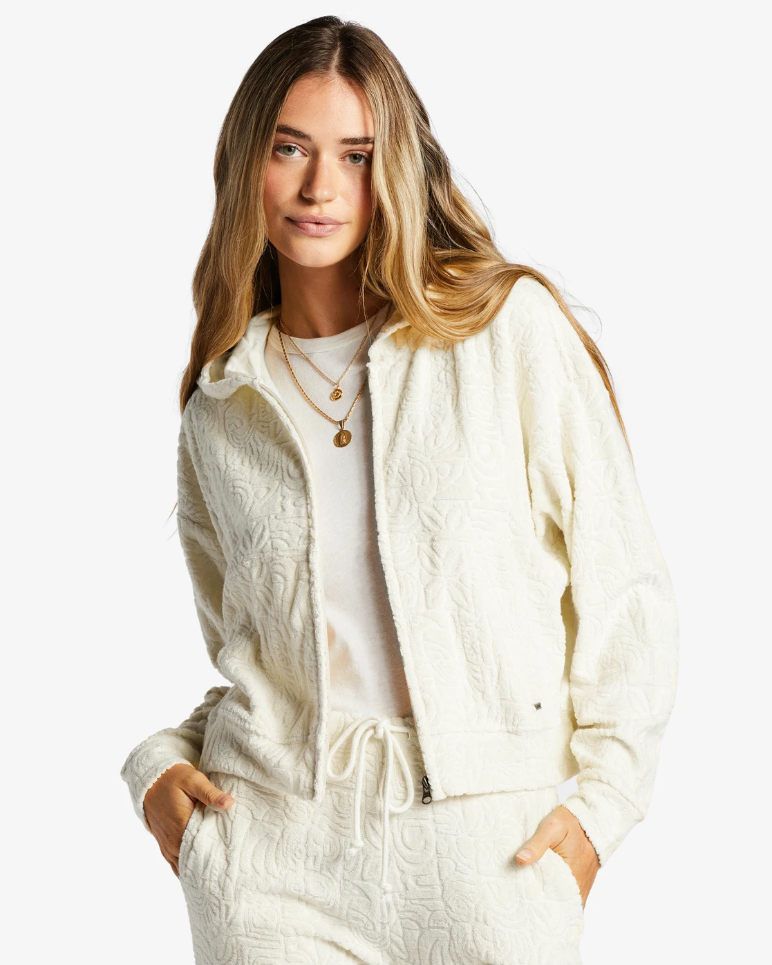 Caractéristiques du Pull à capuche zippé Billabong BEACH BREEZE – Antique White