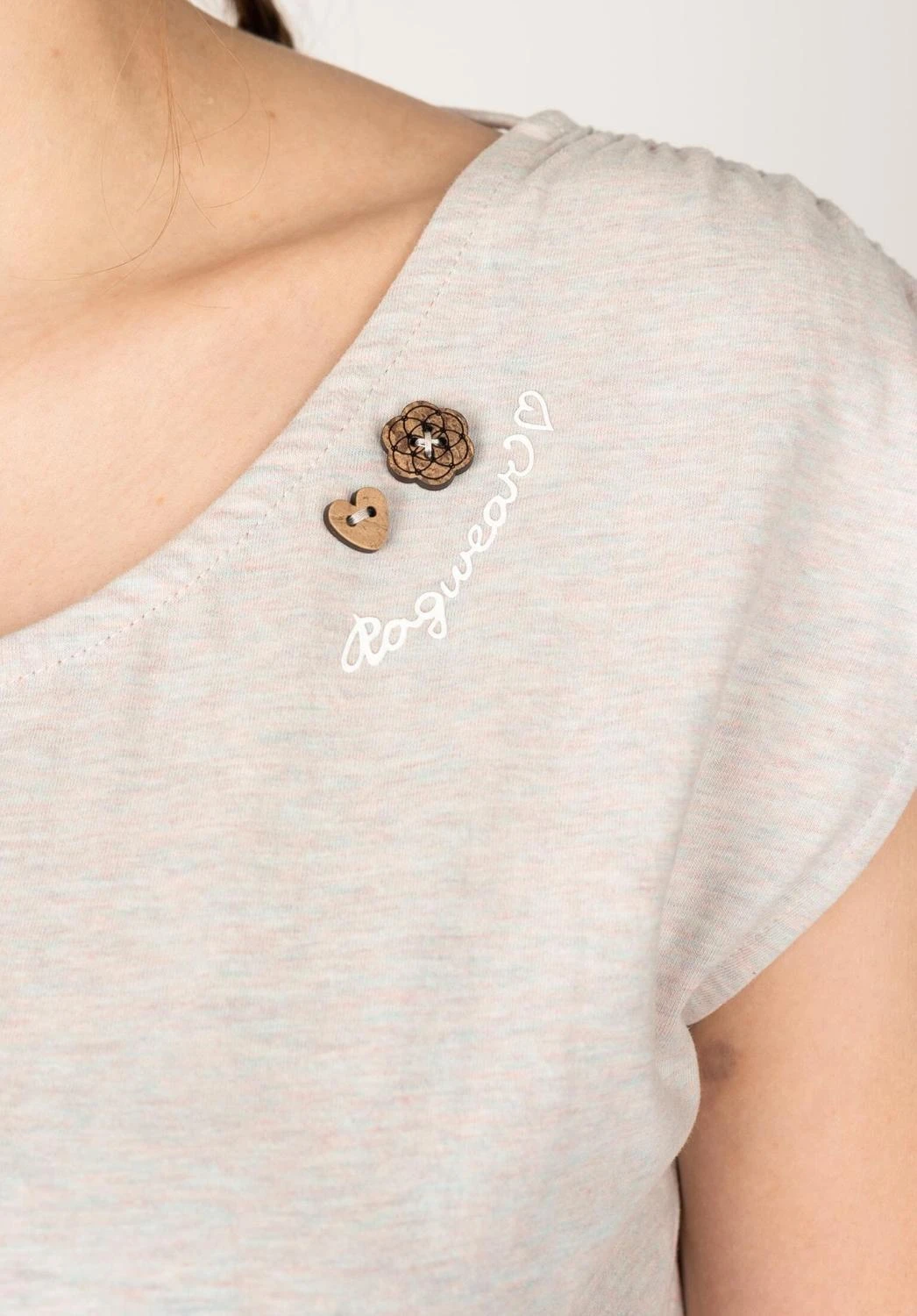 Le top d’été végane ‘GREETA’ séduit par ses détails raffinés, exactement comme tu les connais chez ragwear. Les coutures des épaules sont froncées et le large col rond du t-shirt est orné de deux boutons décoratifs et d’une inscription du logo. Conformément à la devise Un beau dos peut aussi ravir », nos designers ont conçu un décolleté dorsal extra large. Un ruban permet de maintenir le tout en place. L’ourlet légèrement arrondi est orné d’une petite application de label. La douceur du coton 100% et la coupe confortable font de ce top d’été un favori !