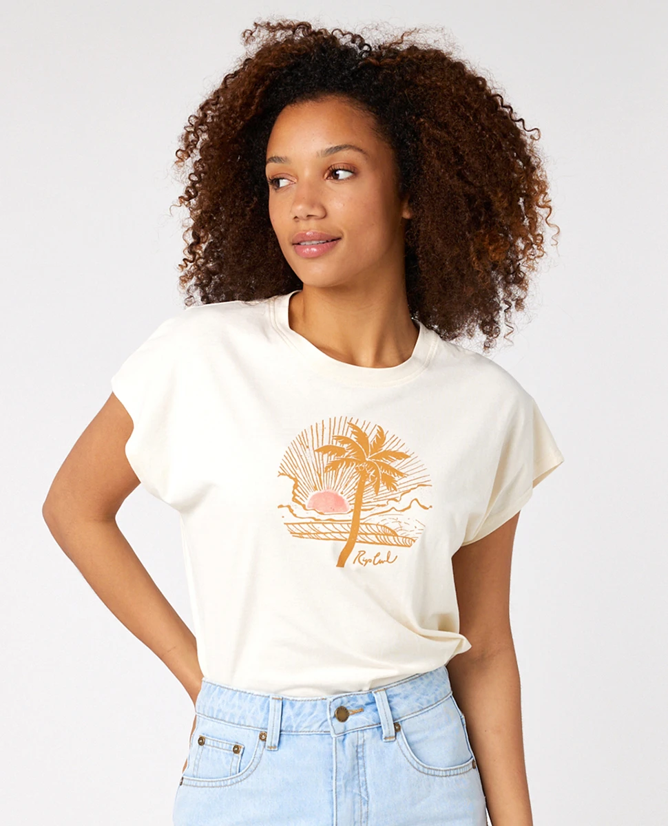 Description du T-shirt à manches courtes Rip curl Bella Palm – Bone
