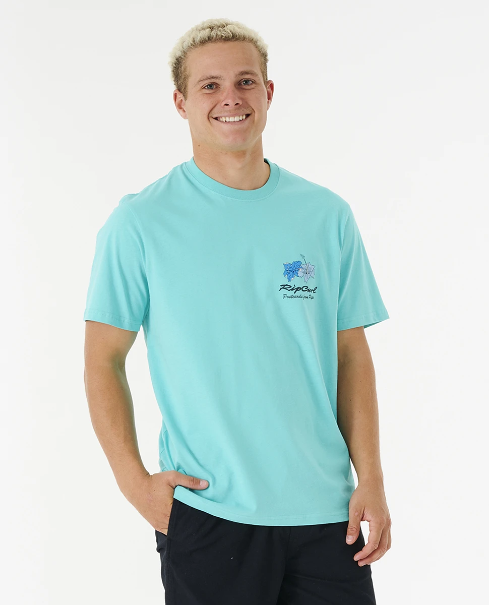Description du T-shirt Rip curl POSTCARDS HIBISCUS TEE – Aqua