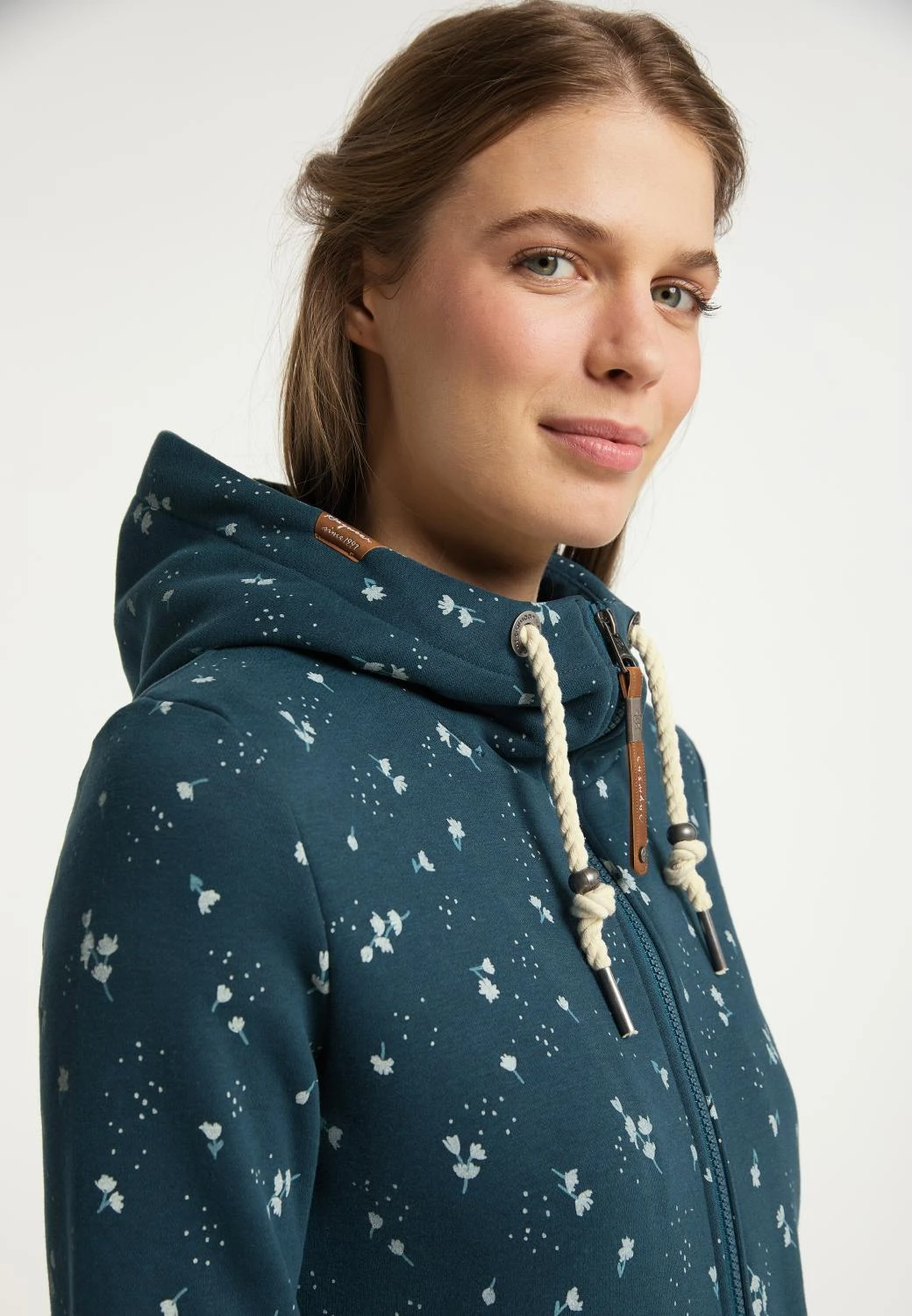 Tout simplement mignon ! La veste à capuche vegan « ANGEL ZIP » de ragwear avec son motif floral est tout simplement adorable. En plus du joli imprimé, le sweat a une grande capuche avec un cordon distinctif, des poignets confortables et des écussons caractéristiques de la marque. Le confort est assuré par des poches latérales et un tissu sweat ultra-doux. Les t-shirts et les jeans simples sont mis en valeur par cette veste.